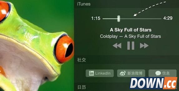 5、此后我们再用 iTunes 播放音乐时,便可以直接在通知中心来控制播放歌曲了,可以换歌曲,可以调节进度。