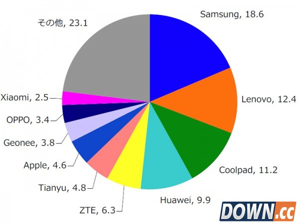 在所有厂商中三星18.4%第一,接下去分别是联想、酷派、华为、中兴、天语、苹果。最近风头正劲的小米位列第九。