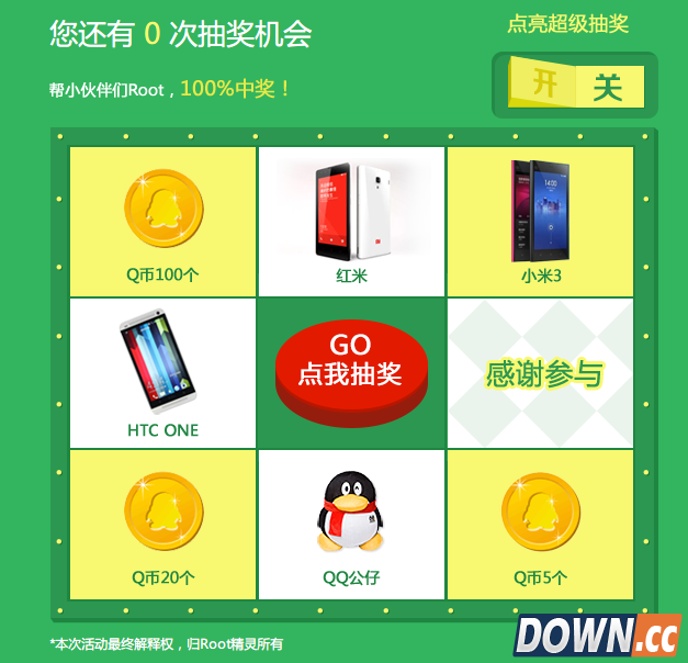 帮小伙伴成功ROOT 3台手机一定能100%中奖!