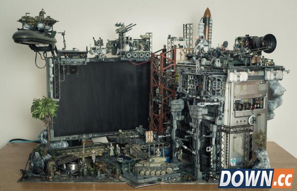 这一“秘密基地”的确具备了一个军事基地的所有必要元素,各种设施、装备、武器、士兵一应俱全,甚至还有一架航天飞机以及单反镜头做成的激光炮,就连键盘、鼠标、USB Hub、U盘这些附件都经过了精雕细琢的设计。