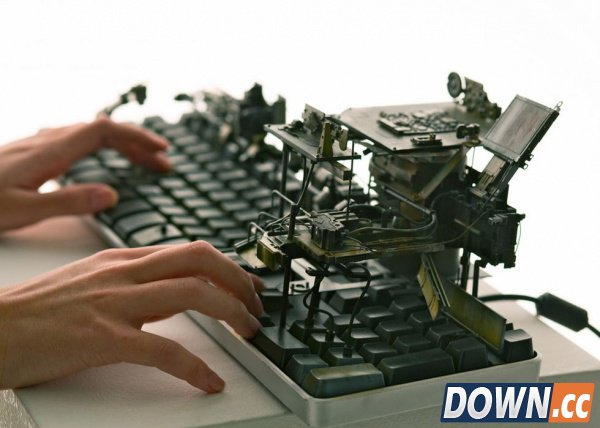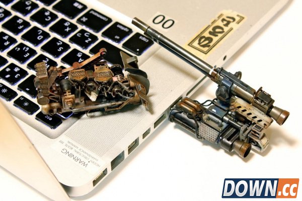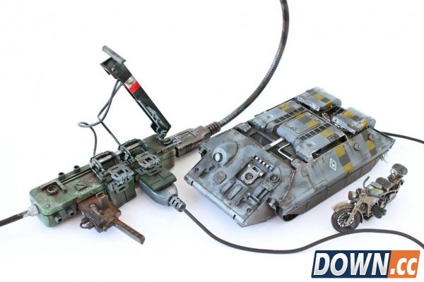 需要指出的是,池内启人所设计这一电脑MOD每一个部件的具体功能都等待用户自己去发掘。比如,图中这个炮筒造型的玩意儿实际上是一个外置U盘,而另一个坦克模样的东西则是鼠标。