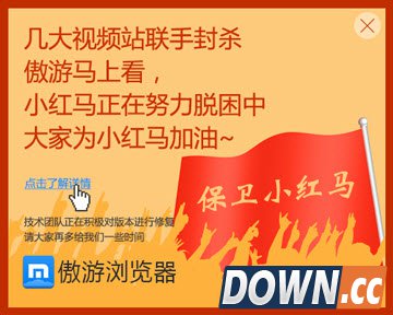 昨天,陆续有用户发现傲游新版本浏览器“马上看”功能对一些视频网站失效。据记者测试,用新版傲游浏览器观看爱奇艺、搜狐视频、优酷视频、PPS、乐视,不使用广告快进功能时可正常观看。但点击“快进”之后,爱奇艺、PPS、乐视、优酷均不能正常播放,提示“不支持该浏览器”,另外,搜狐视频继续正常播放广告,快进功能失效。