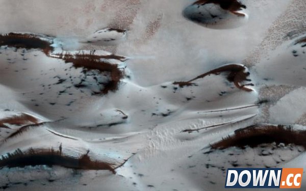 日前,NASA发布了一张火星勘测轨道飞行器(Mars Reconnaissance Orbiter,缩写MRO)在今年1月中旬拍摄下的一张春日融雪照。图片中,白色部分为还被干冰覆盖着的斜坡,黑色部分则都是已经融化了的斜坡。火星的春日融雪期发生的变化看起来跟我们地球在该期间发生的变化似乎并没有存在很大的区别。