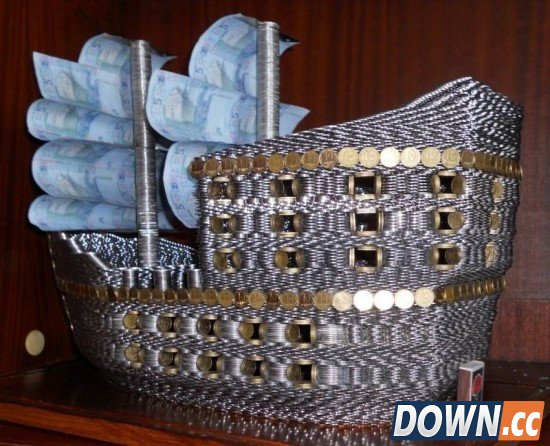 据美国猎奇新闻网站“odditycentral.com”3月20日报道,29岁的乌克兰人Sergei和妻子用1.7万枚乌克兰货币和25张纸币,历经六个月,制作了一个护卫舰模型。Sergei是一名厨师,做模型只是他的爱好。最初,他用的是自己存钱罐中的硬币,但其数量远远不够,所以只要一有机会,他就向朋友们或超市兑换零钱,对方知道他的想法后,也很乐意帮忙。