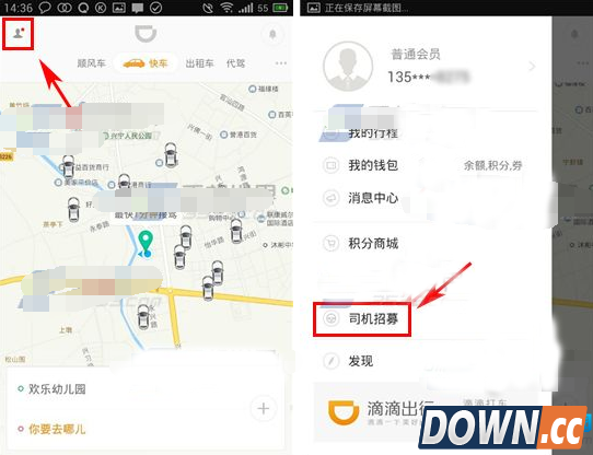 1)进入滴滴出行首页点击左上角【头像】,接着点击【司机招募】。(如下图)