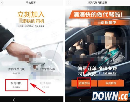 2)点击【代驾司机】,接着点击【我要报名】。(如下图)