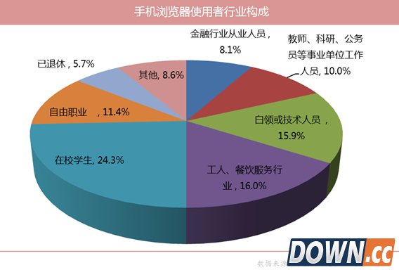 调查显示,学生以24.3%的比例成为浏览器使用者的主力军,金融行业人员占比仅为8.1%,学生作为消费潜力人群,培养其使用习惯和品牌忠诚度就显得极其重要,这样决定了日后手机浏览器将会往垂直细化发展的硬性要求。