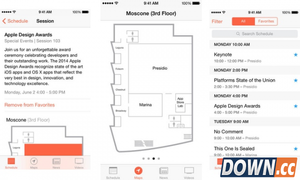 苹果今天更新了iPhone和iPad平台的WWDC官方应用,令应用中简洁的设计完全与iOS 7设计达成一致。去年这款应用以浅紫色为主,今年的2.0版本则选择了橙色调。此外,应用中的4个分类按钮:schedule(计划表)、maps(地图)、news(新闻)、videos(视频),相较去年都有了调整。苹果表示,用户下载更新后可以获悉WWDC 2014的全部新闻和相关信息。