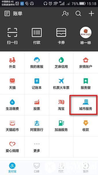 首先下载支付宝进入支付宝首页,然后往下拉找到“城市服务”