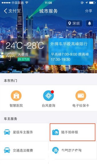 最近支付宝在深圳和杭州地区开通了一项新功能,那就是有奖举报交通违章,在支付宝城市服务里面新增了一个随手拍功能,下面小编就来教教大家如何使用支付宝举报交通违章功能流程,让那些乱停车、乱开车的司机无所遁形吧。