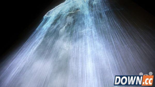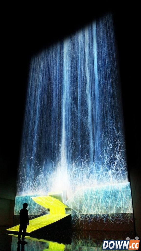 按理说瀑布是不可能出现在太空中的,但借助数码技术,teamLab 实现了。一道绝美的瀑布洒在精心制作的 ALOS-2 观测卫星模型上,虚拟和现实的结合制造了奇异的视觉感受。