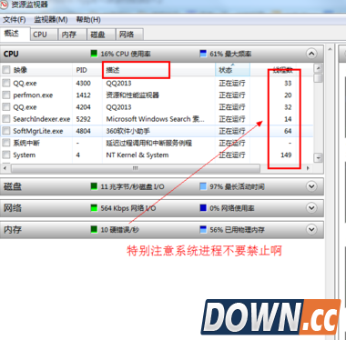 3、禁止描述中你不想要的进程,右击——结束进程即可。