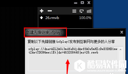 点击创建先锋链接(xfplay)之后,会出现一个影音先锋的视频地址,你可以把地址复制发给对方。进行下载点播