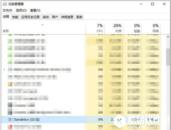 如果没有,这时需要进入“任务管理器”,找到“Dandelion(32位)”这一进程;