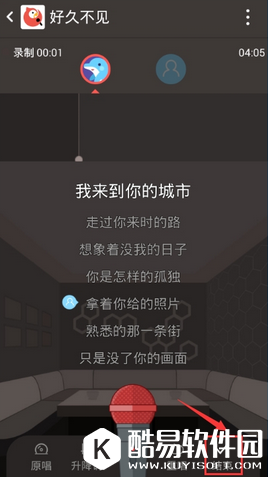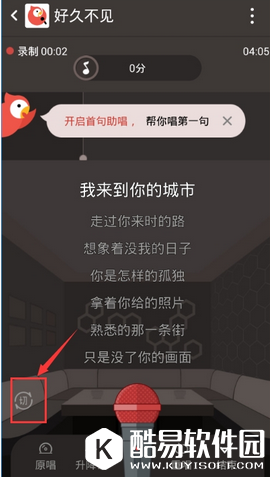 3、进入歌曲详情页面后,点击“切”即切换到录合唱的界面。