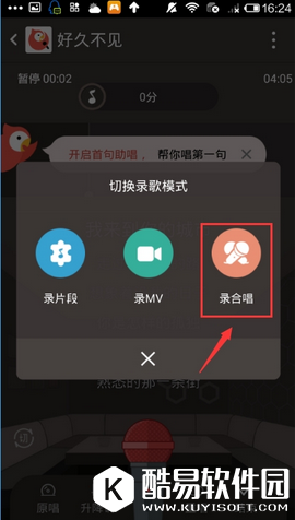 5、即开始合唱,你合唱的部分完成后点击结束。