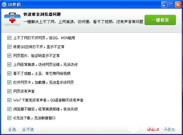 现如今,电脑办公一族越来越多,浏览器可以说是我们电脑的装机必备软件之一,浏览器软件种类繁多,其中IE作为老牌浏览器,在全球浏览器市场中,仍占着最主要的地位。现在很多软件安装过程中会附带一些广告软件,而这些软件会劫持IE,自动更改IE默认设置及IE浏览器主页,浏览器会很容易遭到攻击破坏,会出现上不去网、打不开网页、IE崩溃等问题,所以,使用一款好用的IE浏览器修复工具就显得非常重要了。那IE修复工具哪个好用呢?在此,小编为大家介绍几款常用的IE修复工具,一起来看看吧。