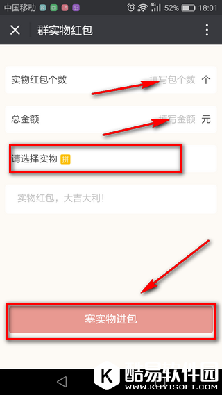 接下来发实物红包的方法和发普通好红包的方法一样。