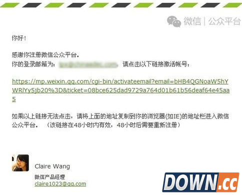 3、注册需要用到邮箱! 填写好邮箱之后进入邮箱。打开微信给你发的邮件, 然后点击里面的激活账号的链接,完成激活即可。