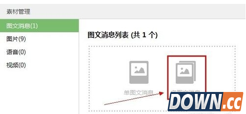 2、不过这里编辑的图文都只是一些图文展示, 如果想要发布可以带链接的图文,这个就需要在素材管理里面来添加了!! 进入素材管理, 点击添加多图文消息。