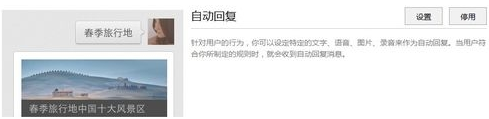 2、进入自动回复之后还需要在自动回复里面点击设置。下面还有自定义菜单功能,不过自定义菜单需要服务号才可以!