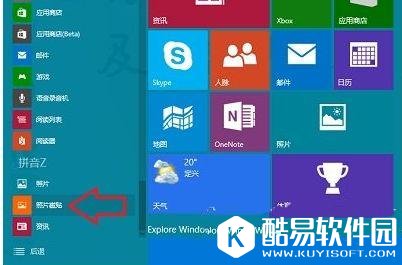 1、按下Win键打开开始菜单,点击所有程序,拖动右侧滚动条找到拼音Z,点击“照片磁贴”打开该程序。