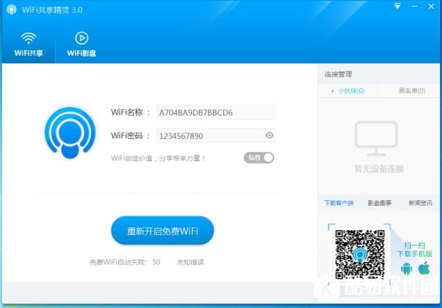 电脑下载WIFI共享精灵,开启免费wifi,智能设备连接共享热点,无需流量即可免费上网!