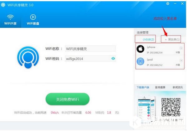 扫描软件界面上的二维码下载WIFI上网精灵,启动影盘,选择有资源的电影文件夹,手机打开WIFI上网精灵连接开启成功的免费WIFI热点,手机即可观看电脑硬盘大片。