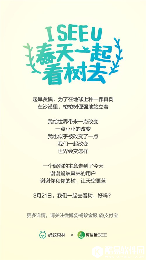支付宝还表示,3月21日的世界森林日,他们将去内蒙古,把阿拉善的树块360度现场拍摄给大家看。