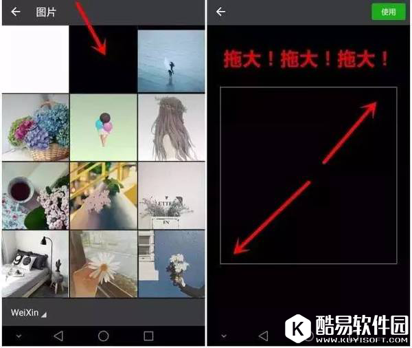 3、从相册里选择透明图片,替换头像即可。替换头像的时候,一定要记得用手指将图片拉大!拉大!再拉大!