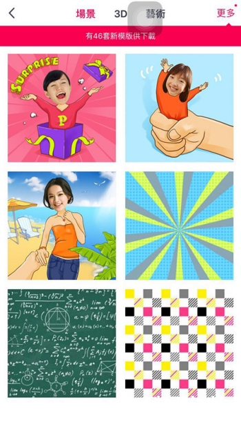 2、根据指示,我们首先要选择一个自己喜欢的模板来做图,有三种提供你选择:场景、3D、艺术。为做示范,小编今天就选择了第一种场景。