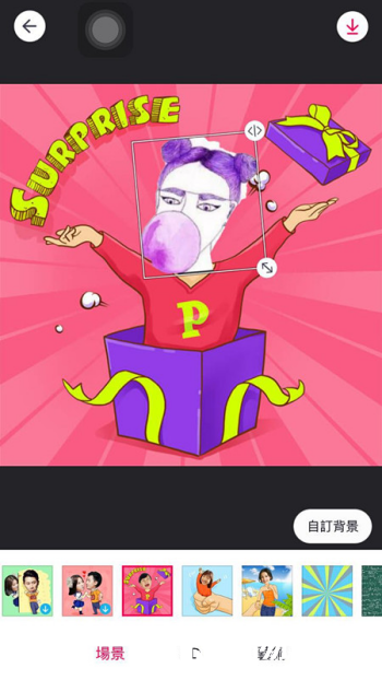 4、进入下一步,而这就是我们更换天天P图抠图背景的重要部分!扣下来的图放在模块里,根据需要调整前景图片的大小位置等等!
