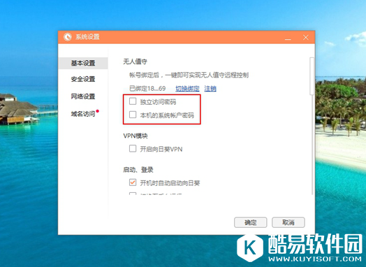3、如果为了安全考虑需要设置远程访问密码的话,在客户端“基本设置”中有“独立访问密码”和“本机的系统账户密码”可以设置。