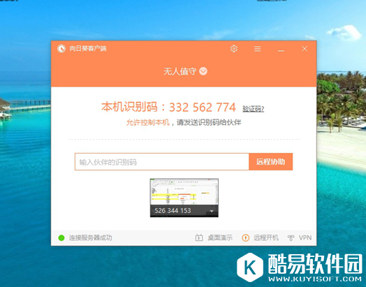 “远程协助”是由主控端通过“识别码”发起远程控制,被控端通过“接受”而实现远程操作过程。比如,伙伴想要远程控制你的电脑,就将向日葵客户端上的“识别码”发送给对方,你再“接受”就可以远控。