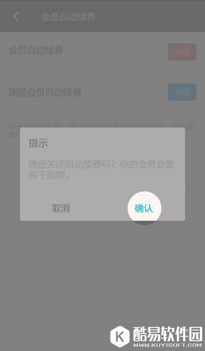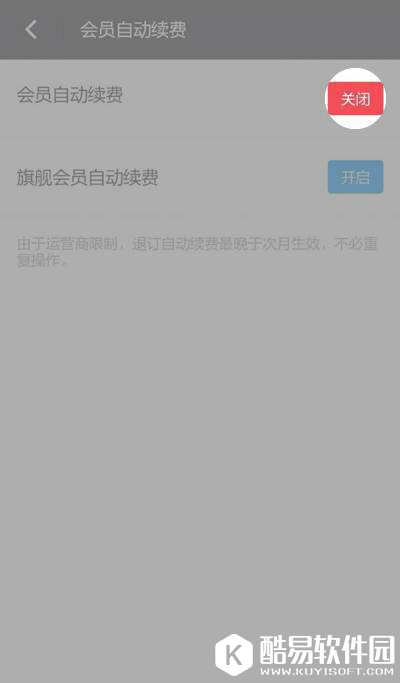 ③ 点击会员自动续费的“关闭”按钮