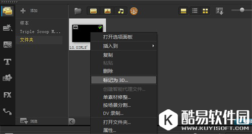 3、然后将转换后的视频导入到素材库或者视频轨中,然后右击点击“标记为3D”命令,如图2所示。