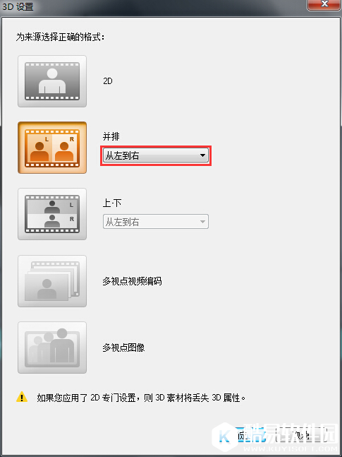 4、在弹出的“3D设置“对话框中,选择第二图标,并排选择“从左到右”格式,最后点击确定,如图3所示。