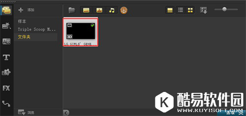 5、媒体库中的视频素材缩略图,就带有3D文件标记了,如图4所示。