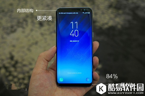 柔性屏幕几乎消除了左右边框,手机上下两端的空间同样进行了结构优化,竟然把屏占比提高至84%。三星Galaxy S8/S8+并未牺牲功能性以换取美观度,视觉上显得极为平衡。