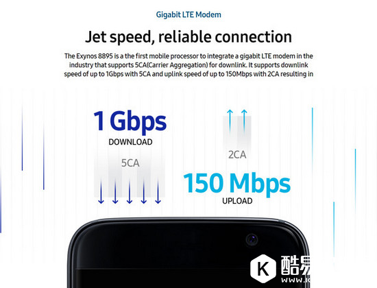 网络上面,三星Exynos 8895支持上行链路支持2载波聚合(2CA)、最高速率150Mbps,下行链路支持5载波聚合(5CA)、最高速率1Gbps。另一方面,Exynos 8895还支持FD-MIMO、LBT等授权频谱辅助接入技术。