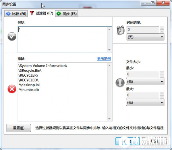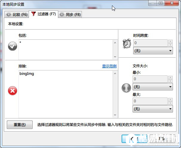 过滤器,决定你选择的两个文件夹不对比那些内容(排除),仅对比哪些内容(包括)