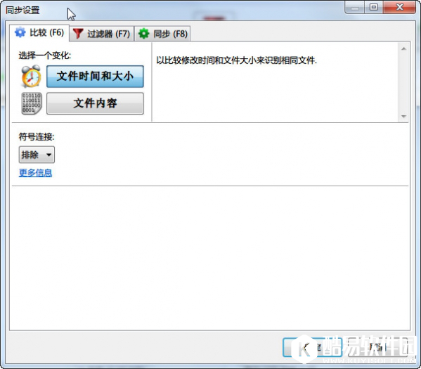 比较设置,默认选择比较文件时间和大小,速度极快,比较文件内容较慢,没有特殊情况不建议选择