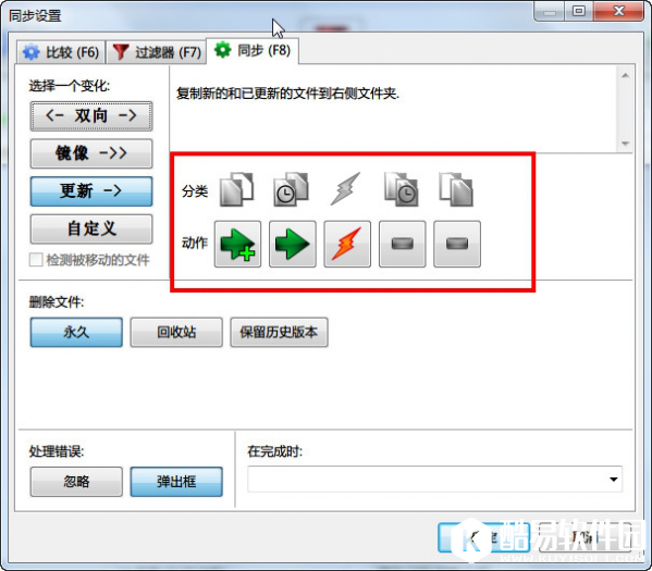 同步设置,建议选择更新,这样:
