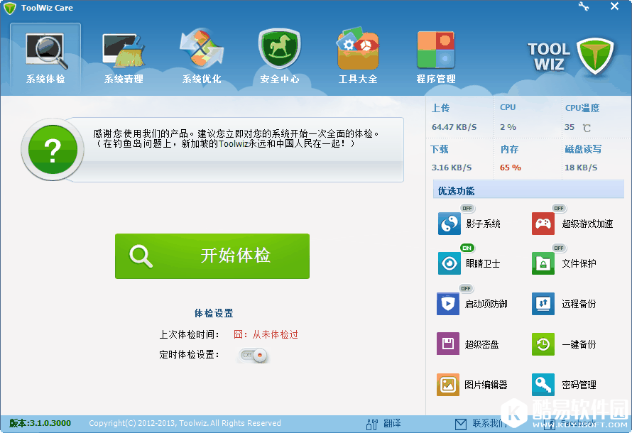 Toolwiz Care 功能上集百家之长,只要其它优化软件有的功能,它基本也有,而且更人性化。