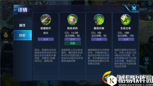 技能使用技巧:作战时扁鹊可以先手一技能干扰敌军走位同时叠加印记,接着打出尽可能多的普通攻击,然后走到队友身后释放二技能,使二技能尽量同时命中敌军和队友,最后观察情况释放大招引爆印记。后期的扁鹊技能冷却时间较短,有可能使用二技能对队友施加一层以上的印记,一定谨慎释放大招,使其伤害和治疗效果最大化。