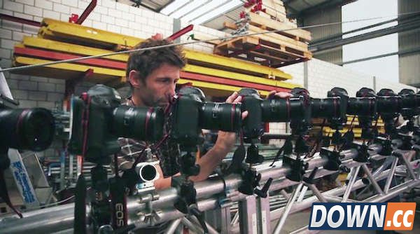 因电影《黑客帝国 》而一夜成名的子弹时间拍摄法已经没有什么秘密可言,不管是单反还是手机都能实现这种酷炫的视觉效果,不过没有技术门槛不代表没有门槛,要拍摄子弹时间的前提是舍得花钱购买大量设备。瑞士SRF广播电视台去年投入将近50万美元购入了50套佳能EOS-1D X相机和24-70mm f/2.8L II镜头,制作了一套专业级子弹时间拍摄系统。