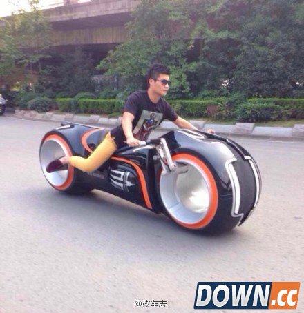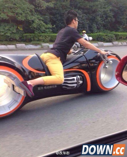 昨天下午4点多,国内各大社交平台上突然开始流传一组照片:一名戴着墨镜的男子“趴”在一辆造型拉风的摩托车上;与普通摩托车不同的是,这辆摩托车的两个轮子是中空的。照片刚流传出几分钟,就有网友认出,这是美国科幻大片《创战纪》中的道具车——特隆。