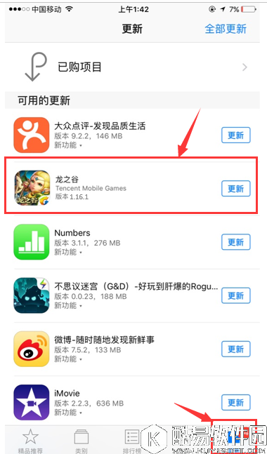 打开Appstore的更新页签,这里你也能更新到最新的龙之谷哟!!也可以直接从在Appstore直接搜索下载。