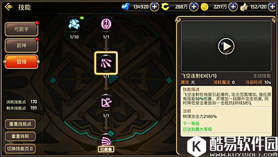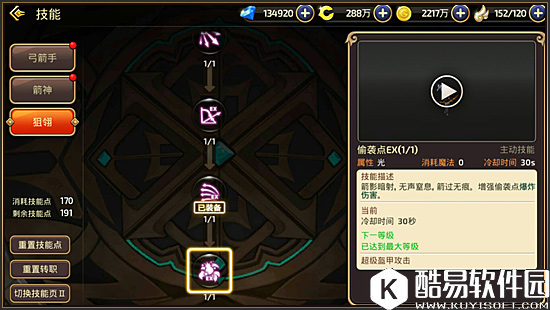 近距离输出技能,在这个技能的选择上,主要的目的并不是为了输出,对于这样的关卡来说,最忌讳的就是近战输出,处理的不好很容易被敌方怪物boss,从而影响你的战场安全。而我所看中的则是技能释放完成之后的一个后摆动作。特别是怪物距离你过近来不及躲避的情况下,可以立马开启这个技能,这样就能被动的帮你拉近一段距离,在落地之后就能利用跳跃技能迅速逃离怪物的攻击范围。