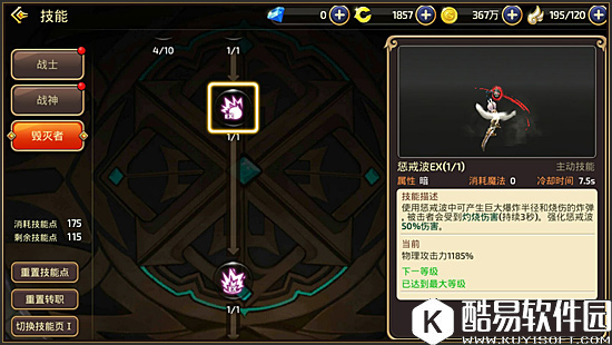 55级第二个EX技能:惩戒波EX——惩戒波是一个很好的仇恨技能,它对于副本中的boss可以造成大量的仇恨值,因此在各种副本中,当战神职业选择当主T的时候,就会选择佩戴一个惩戒波来作为拉仇恨的T怪技能。惩戒波的攻击距离很远,它就像是把一个小炸弹对着很远的地方丢出去,然后在砸中目标或者落地时候造成范围爆炸,有击飞的效果。EX的惩戒波增加了伤害和范围,还附带灼烧效果。在PVP中,少数的战神玩家会选择用它当做骚扰性技能,开局的时候丢一个小炸弹,对手不得已翻滚,这时候你使用范围炸弹,处在攻击范围内的对手就会被击飞,直接获得一定的先手优势,但是它并不适用于高端局,毕竟大部分玩家都会对此有所防备。所以很多时候,战神玩家使用惩戒波的,多半是作为骚扰和限制走位使用,配合跑图,拖一下核心技能的CD,作用和月主的一些远程技能有异曲同工之处。PVE如果T怪,则是必带技能,PVP的话还是看玩家的具体打法,我们不作推荐。